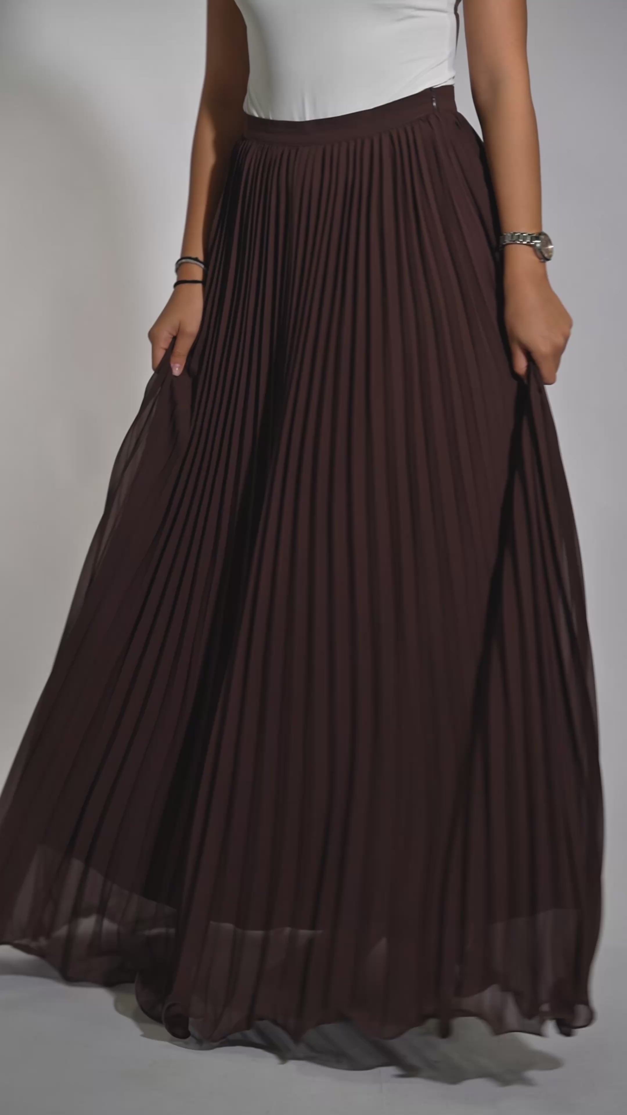 plisse skirt - dark brown - Losyana.Shop
