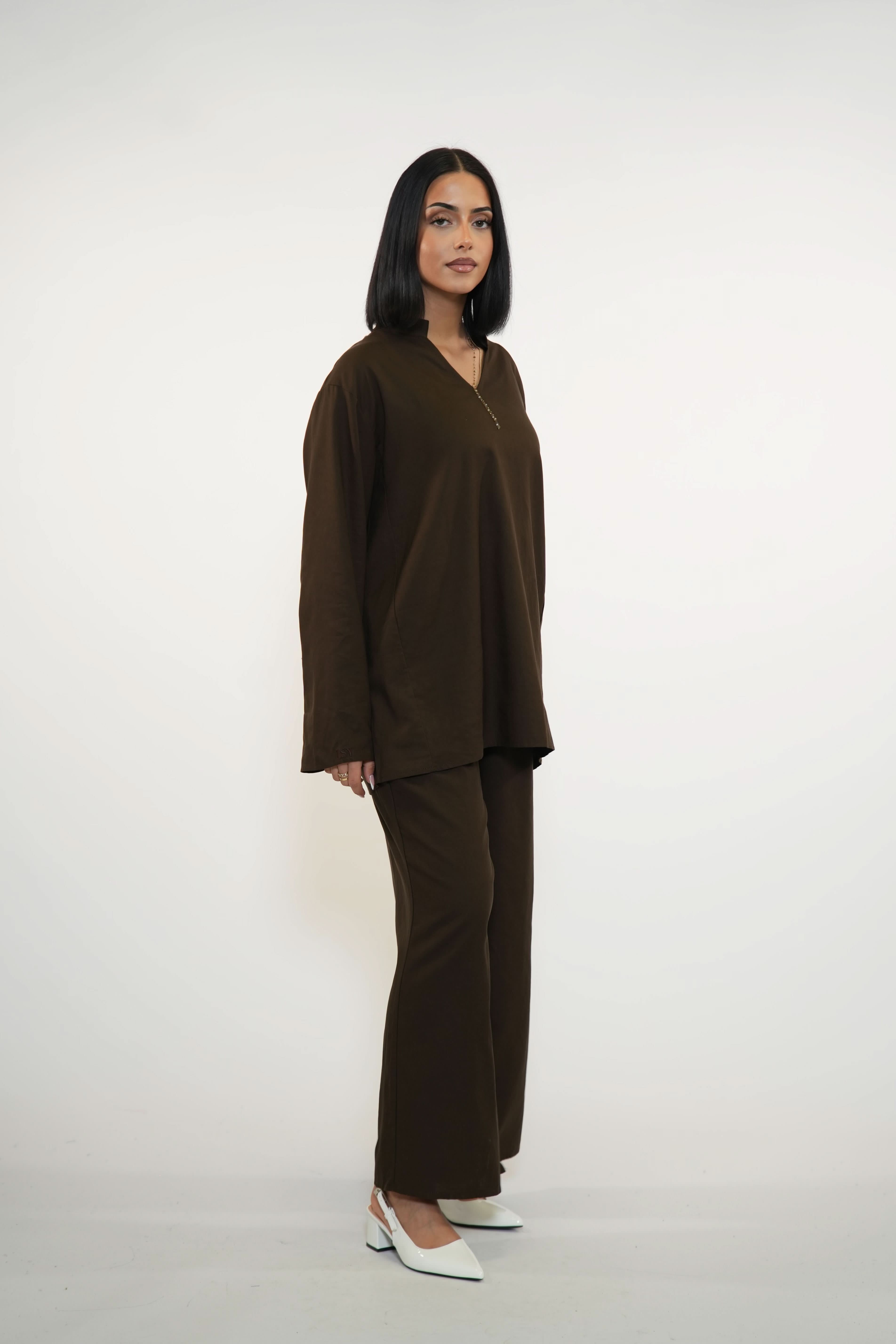 Das luftige Oberteil und die bequeme, weite Hose bringen das mediterrane Lebensgefühl direkt in deinen Alltag. Der feine Leinenstoff sorgt für ein angenehm kühles Tragegefühl, während das schlichte, zeitlose Design an die unbeschwerten Sommertage an der Amalfiküste erinnert.