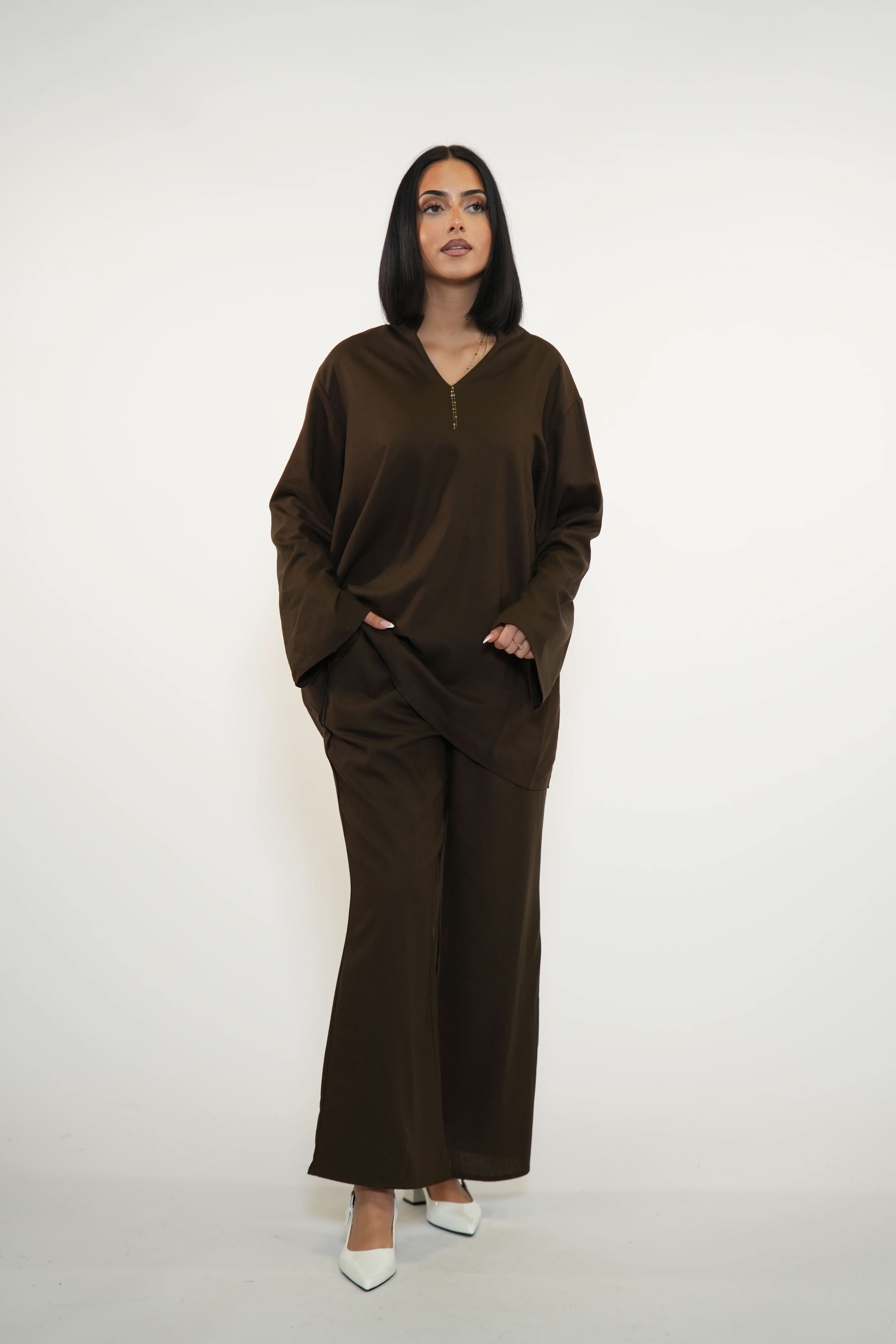 Lass dich von der Leichtigkeit des italienischen Sommers inspirieren mit unserem Sicilian Breeze Set, bestehend aus einem luftig-leichten Oberteil und einer bequemen Hose. Aus hochwertigem, atmungsaktivem Leinen gefertigt, ist dieses Swt die perfekt Wahl für entspannte Sommertage. Der weiche Stoff umhüllt dich sanft und lässt deine Haut atmen - ideal für die heißen Tage der Saison.