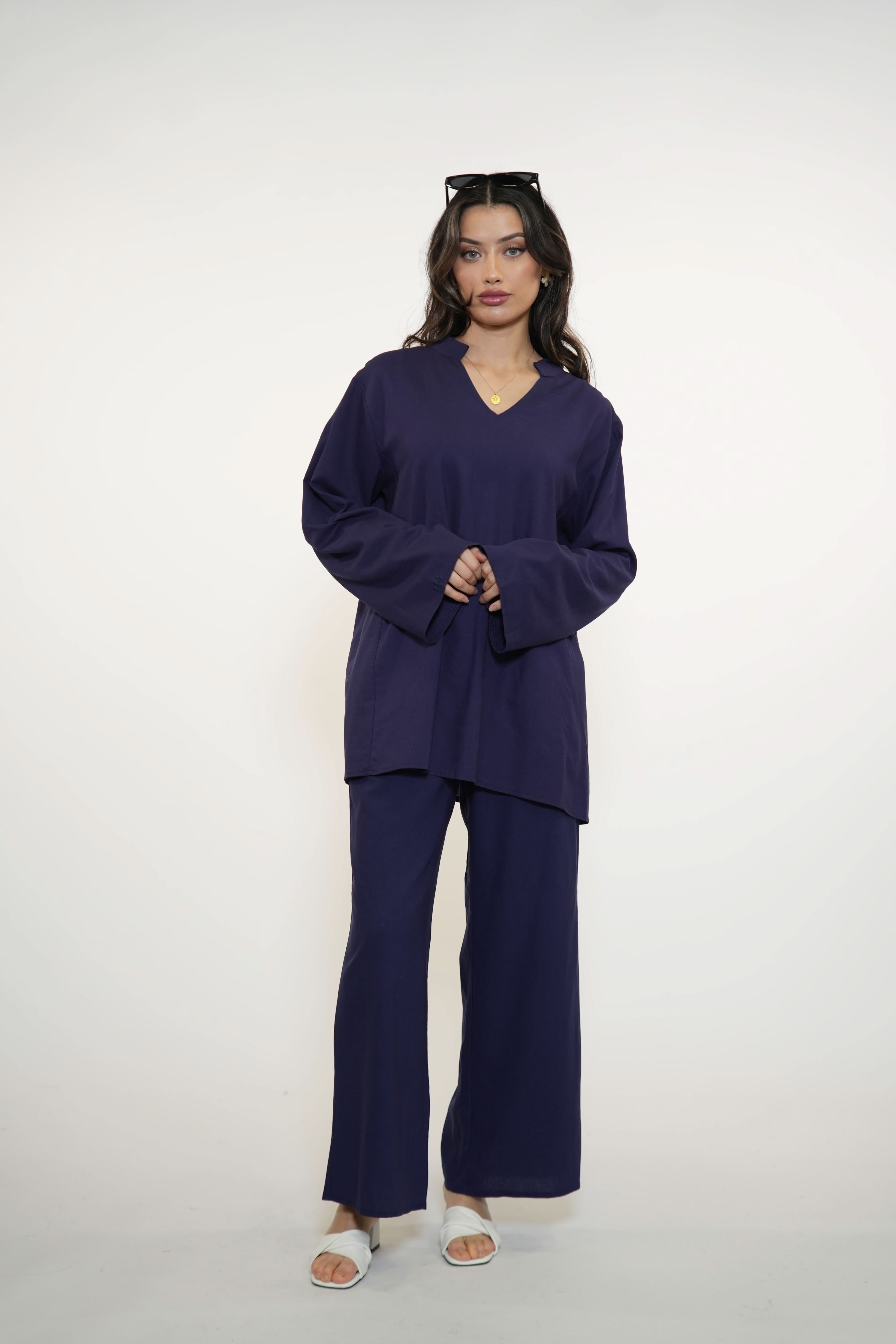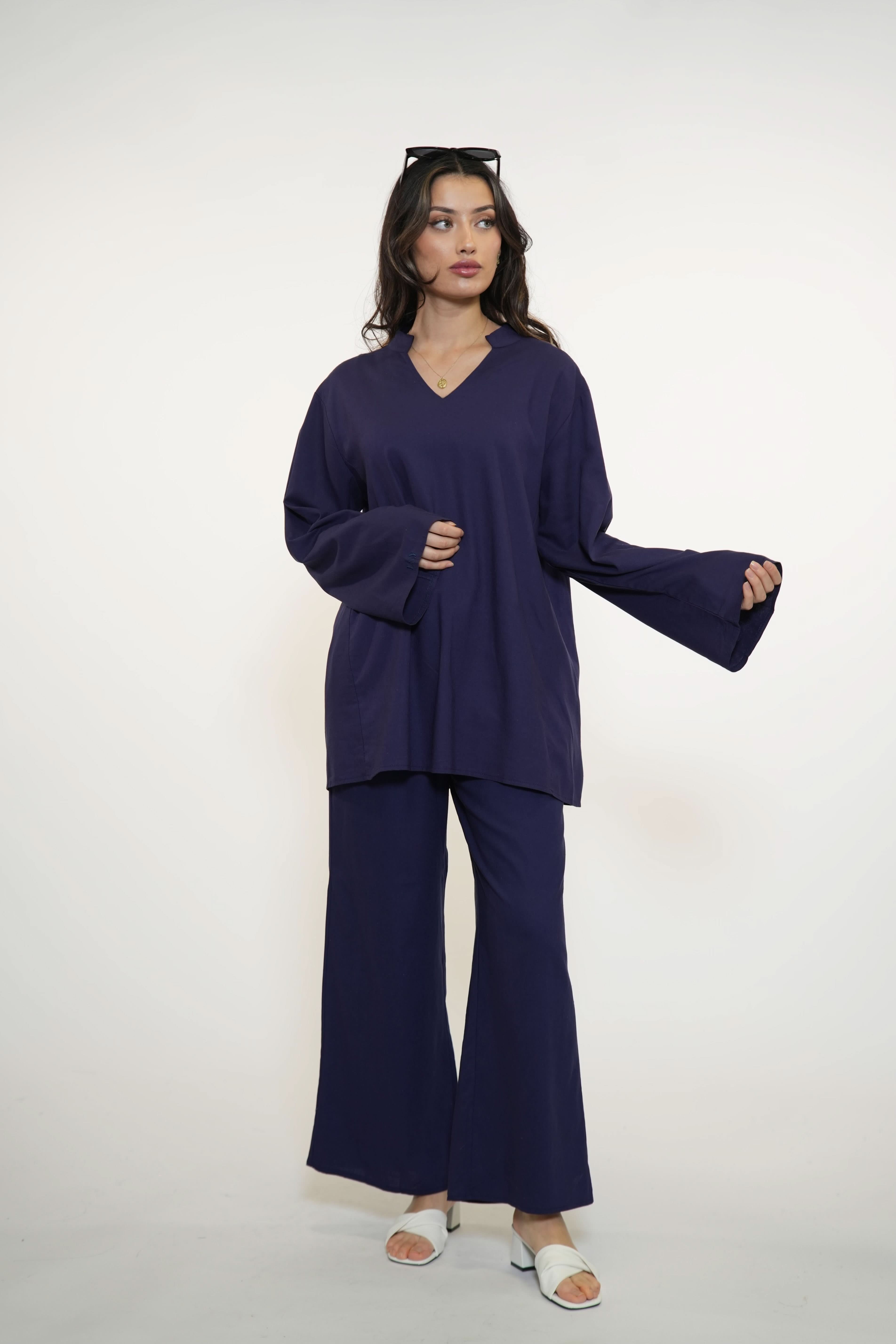 Das luftige Oberteil und die bequeme, weite Hose bringen das mediterrane Lebensgefühl direkt in deinen Alltag. Der feine Leinenstoff sorgt für ein angenehm kühles Tragegefühl, während das schlichte, zeitlose Design an die unbeschwerten Sommertage an der Amalfiküste erinnert.